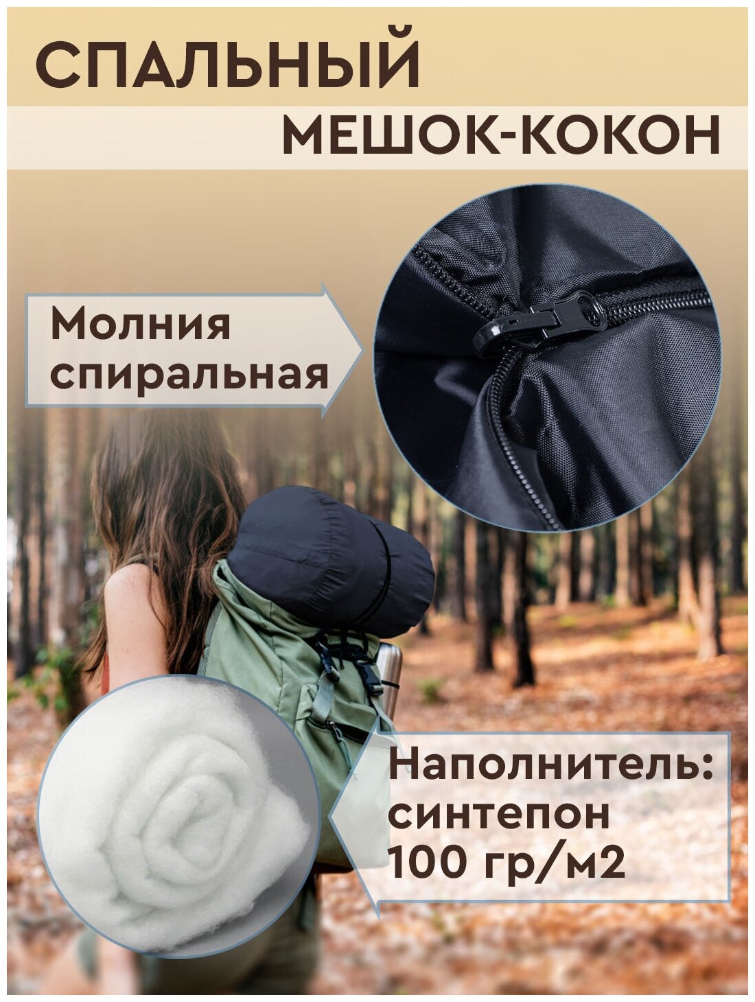 10 цен на Спальный мешок кокон с капюшоном до +5С для туризма, охоты, рыбалки, кемпинга