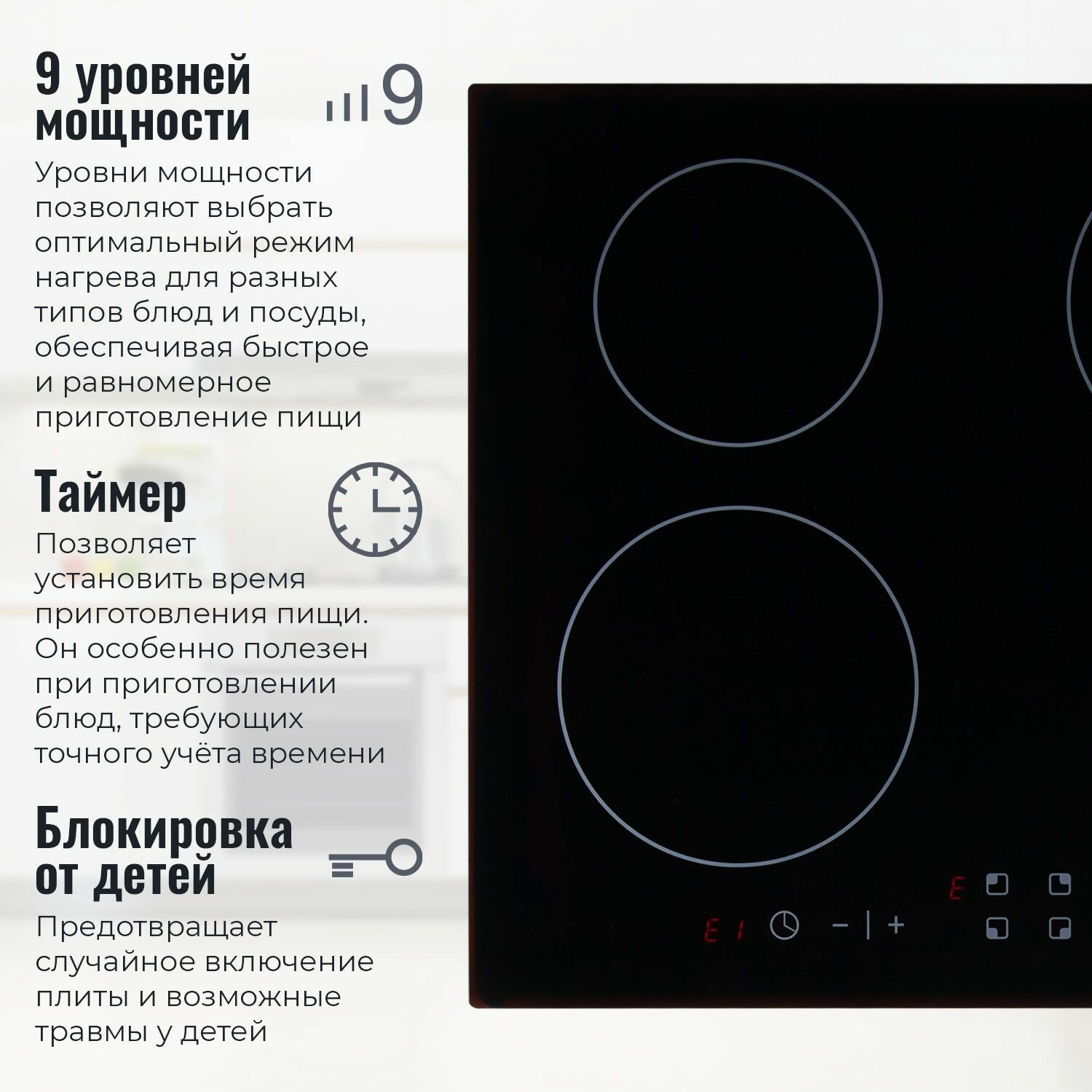 Индукционная варочная панель с инвертором Weissgauff HI 642 BFZG, 9 уровней мощности, блокировка от детей, таймер