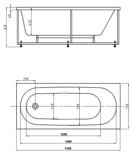 Ванна Gamma 140х70 см, акриловая, на каркасе, экран к ванне Gamma 140