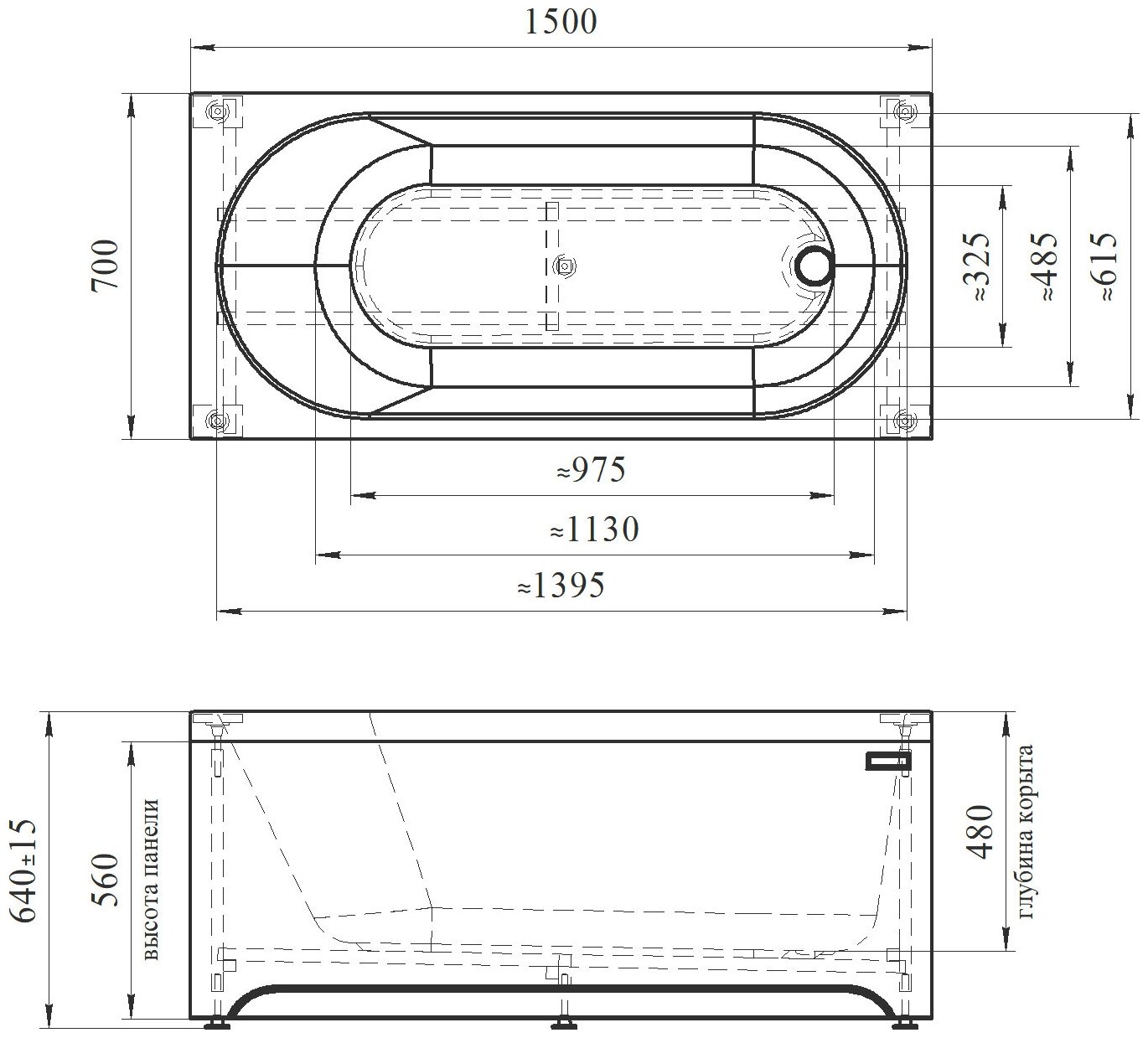 Ванна Gamma 140х70 см, акриловая, на каркасе, экран к ванне Gamma 140