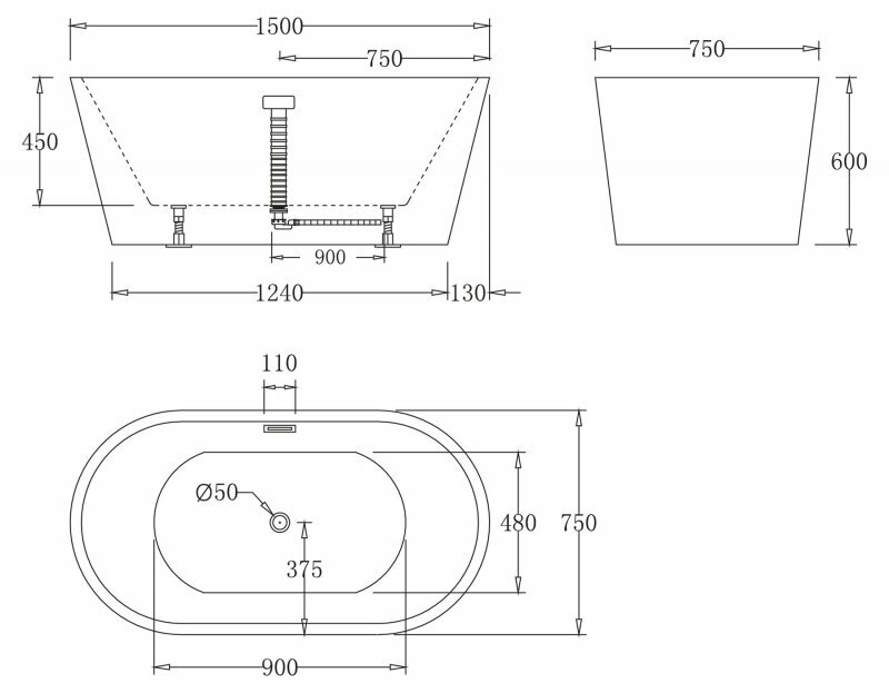 | Дополнительная информация | Расположение перелива: Сливное отверстие посередине дна ванны. |