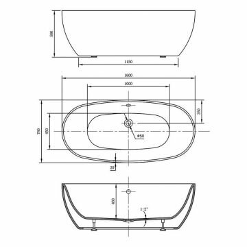 Ванна Vincea VBT-405-1600 160x78 76 150 ₽