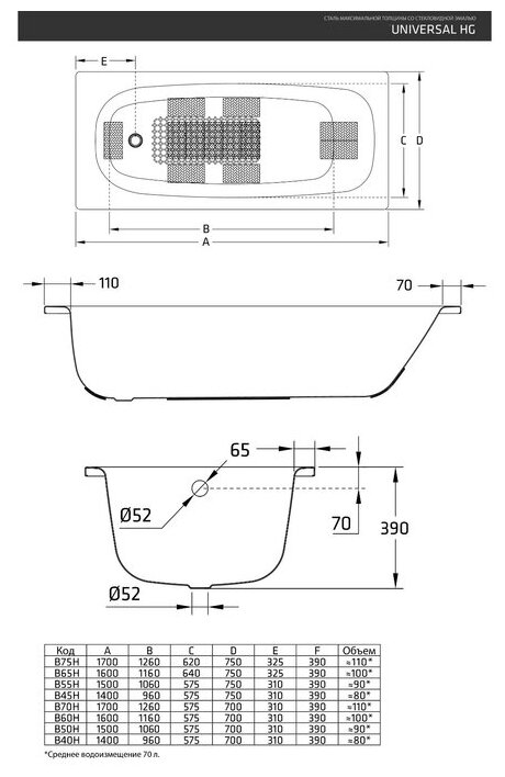 Стальная ванна Blb Universal HG 160x70 без отв. для ручек информация: