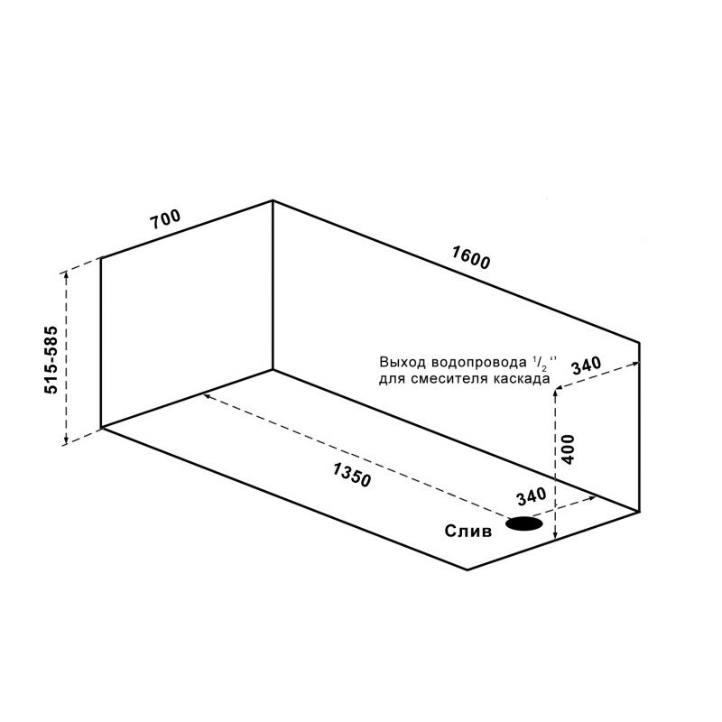 Акриловая ванна ARAGUT Кама 160х70 прямоугольная, в комплекте с каркасом, белая