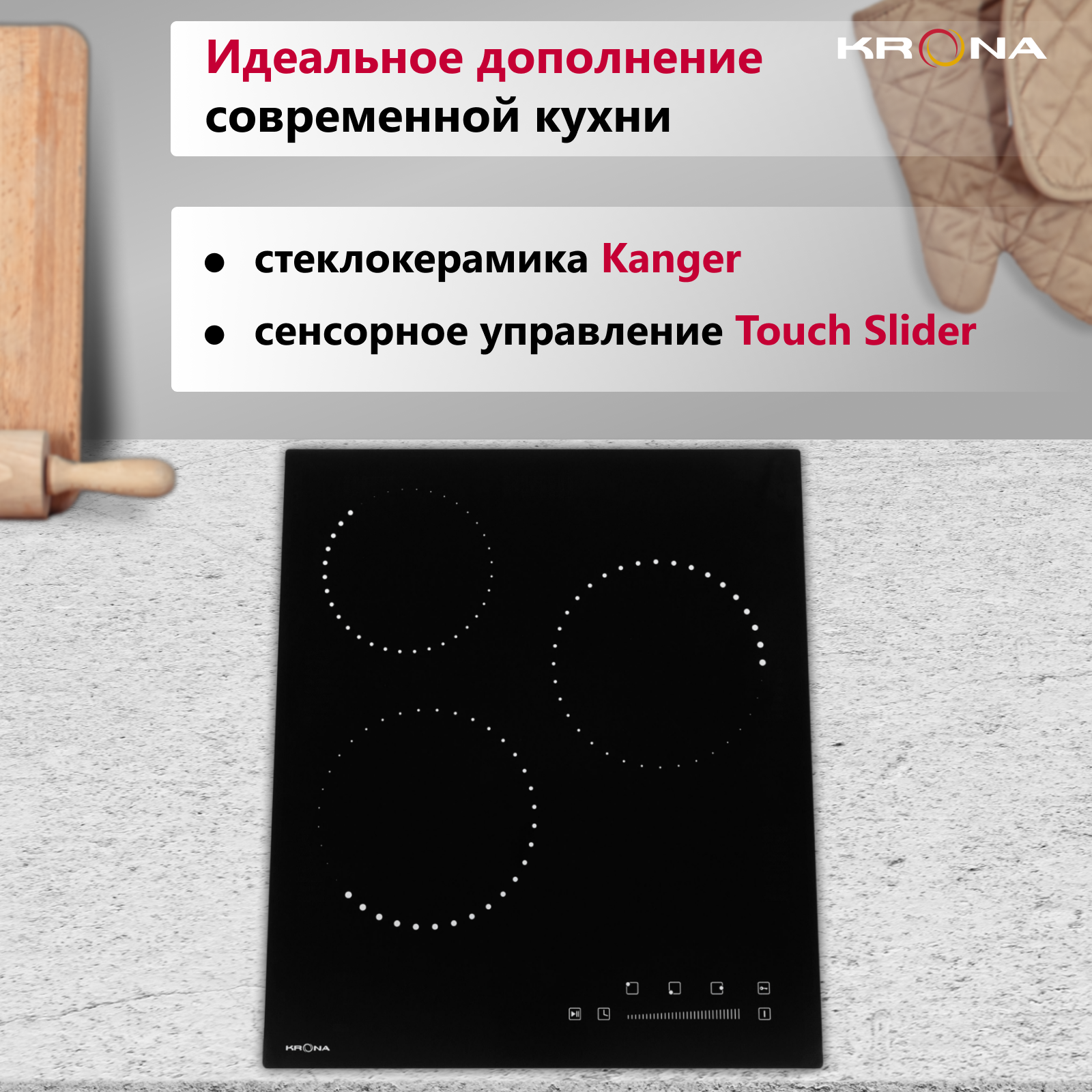 Krona Corto 45 BL Электрическая варочная поверхность .