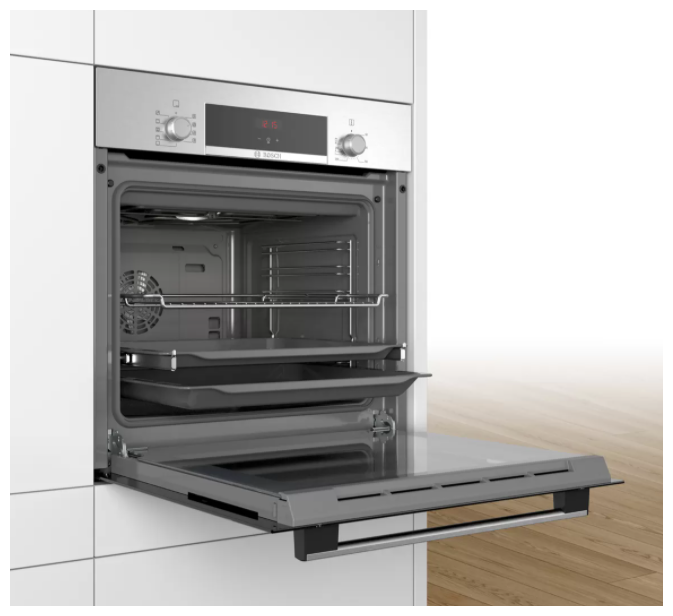 ABC Духовой шкаф Bosch Serie 4 HBF534ES0Q, встраиваемый, электрический, A, серебристо-черный (60см, 3300Вт) 50 005 ₽