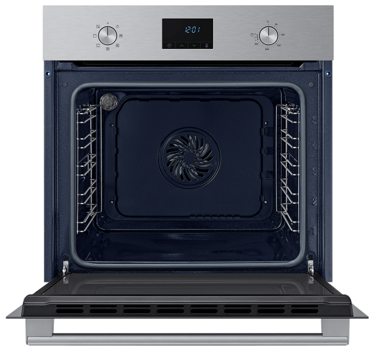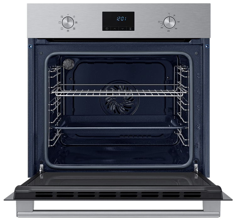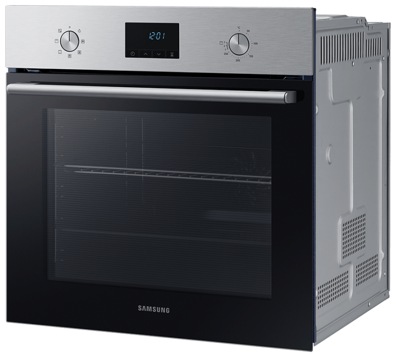 Электрический духовой шкаф Samsung NV68A1110BS/WT, встраиваемый, 68 л, с грилем и конвекцией, утапливаемыми переключателями, таймером и защитой от детей, цвет нержавеющая сталь