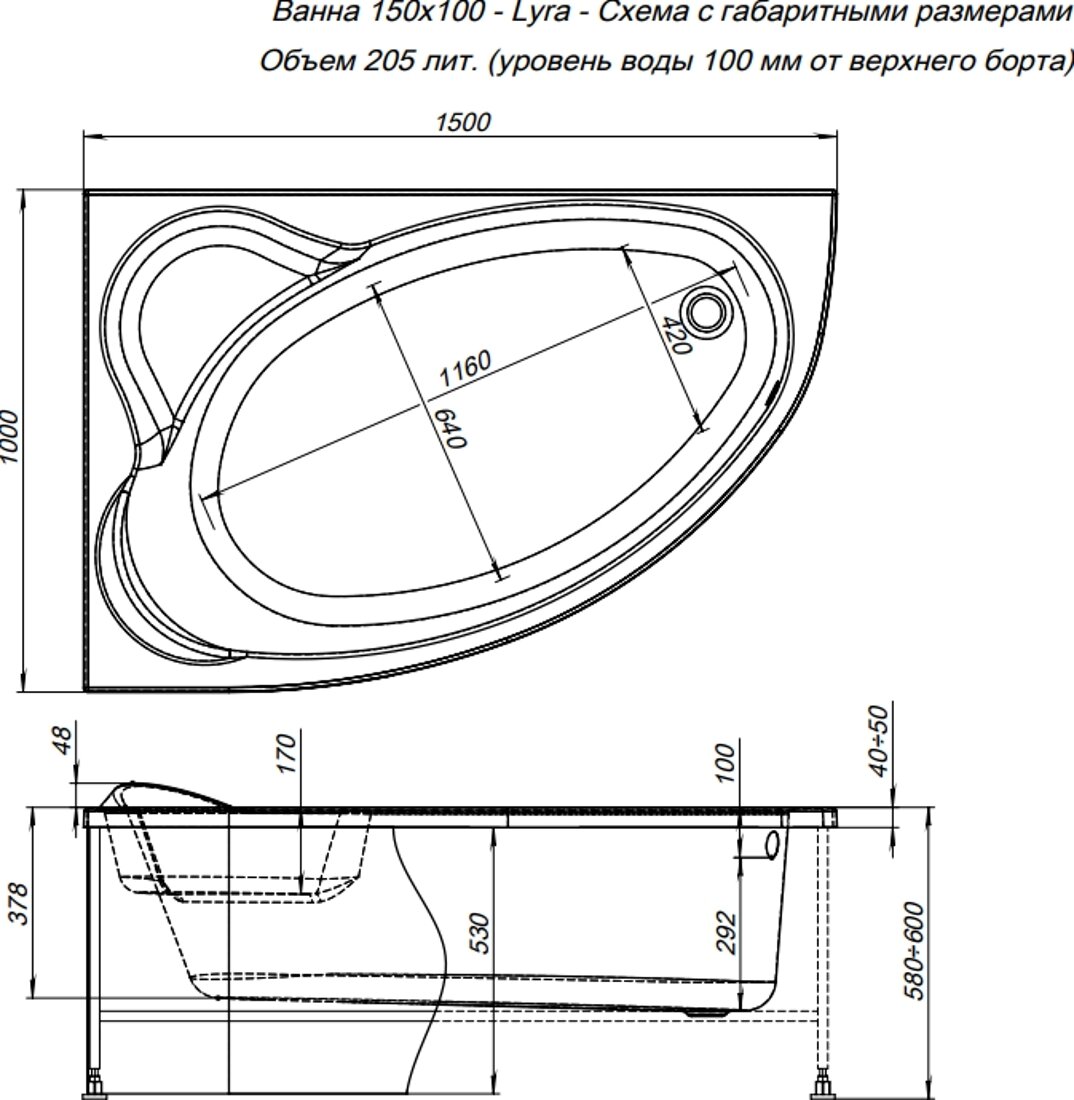 Акриловая ванна Aquanet Lyra 150x100 L (с каркасом) информация:
