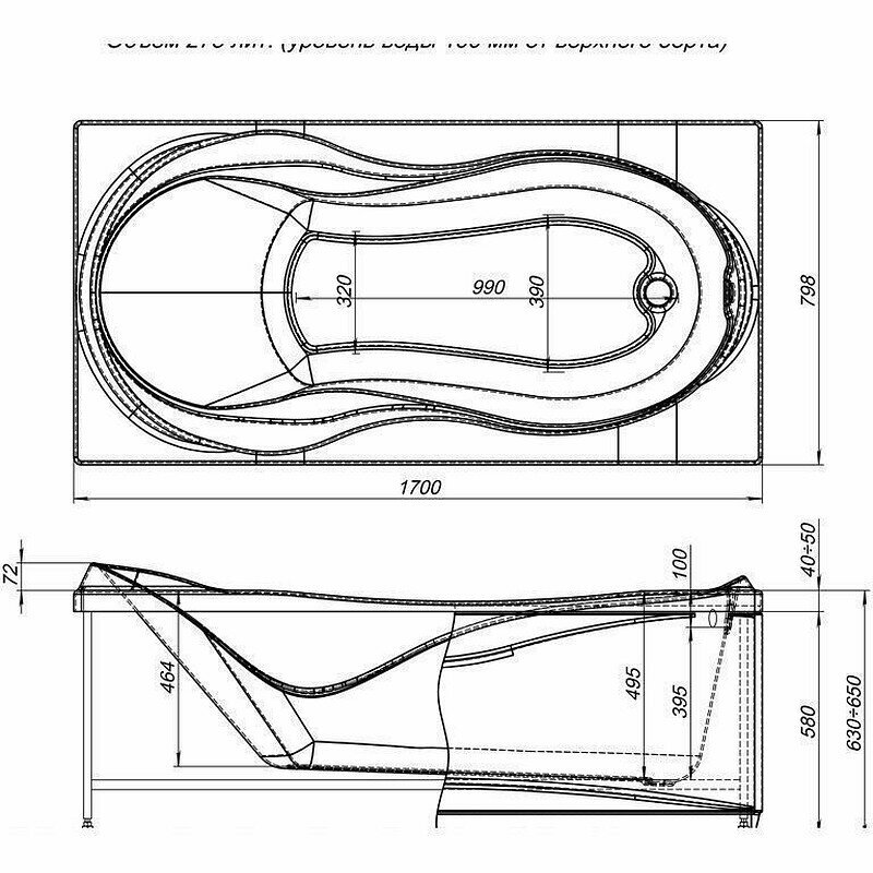 Ванна Gamma 140х70 см, акриловая, на каркасе, экран к ванне Gamma 140