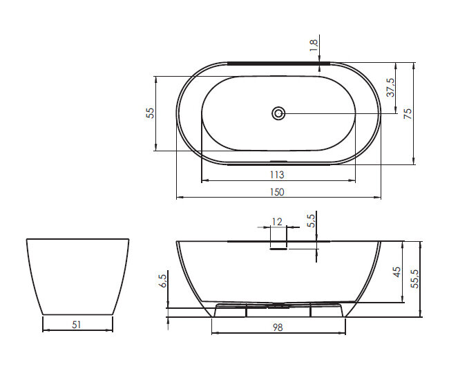 Ванна Ceruttispa COMO150 акриловая (1500x750x560) отдельностоящая, белая