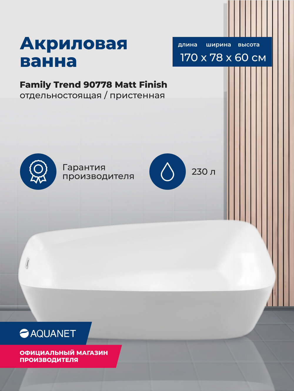 Мы выбрали 10 лучших цен на Акриловая ванна Aquanet Trend 170x78 90778 Matt Finish. Перед тем как купить Акриловая ванна Aquanet Trend 170x78 90778 Matt Finish посмотрите найденные предложения из Яндекс Маркета и других сайтов на основе XML фидов.