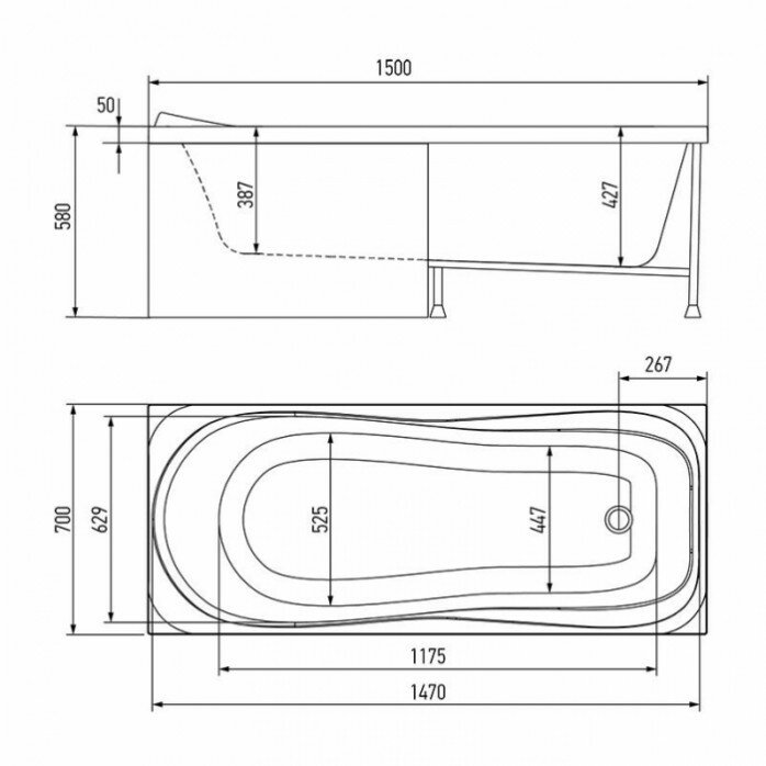Ванна Gamma 140х70 см, акриловая, на каркасе, экран к ванне Gamma 140
