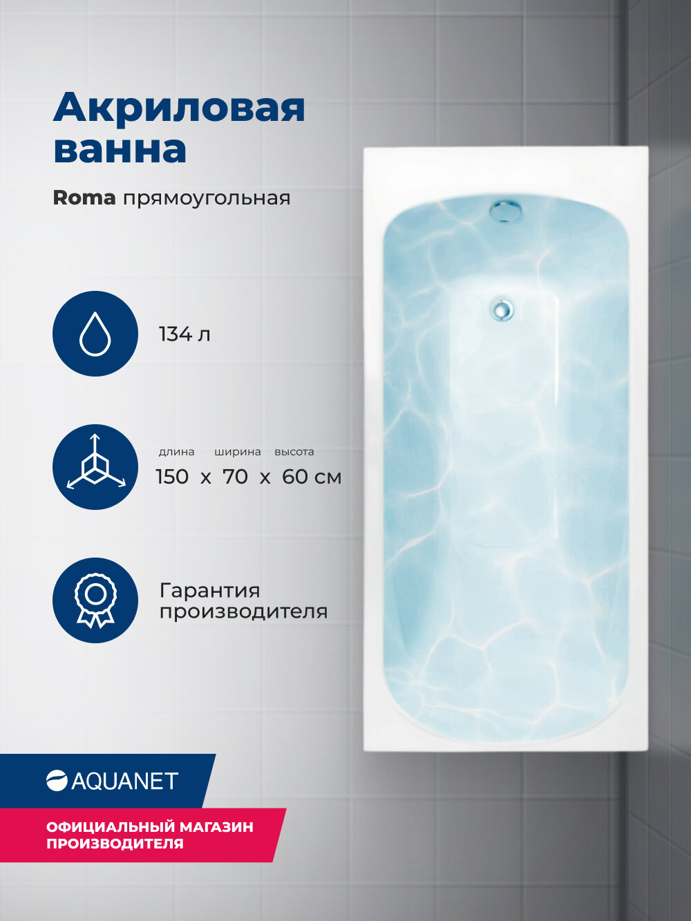 Акриловая ванна Aquanet Roma 150x70 (с каркасом) информация: