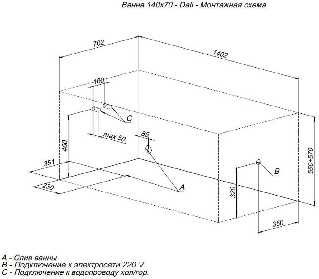 Акриловая ванна Aquanet Dali 140x70 информация: