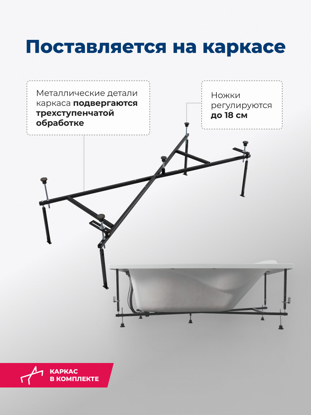 Акриловая ванна ARAGUT Кама 160х70 прямоугольная, в комплекте с каркасом, белая