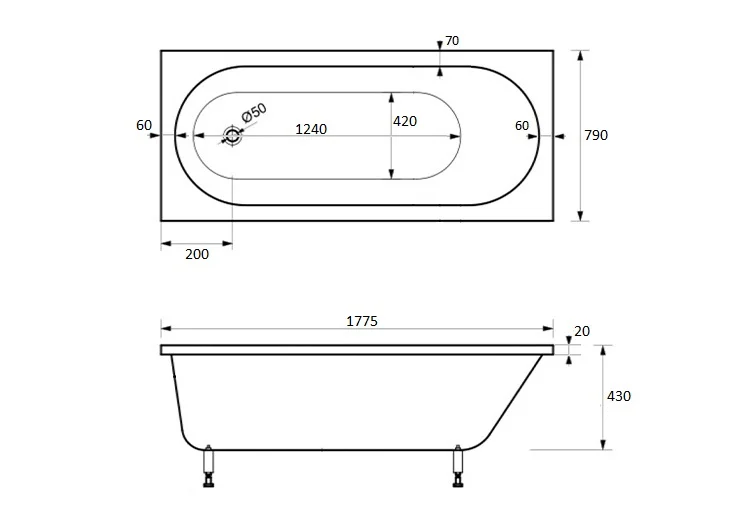 Ванна Gamma 140х70 см, акриловая, на каркасе, экран к ванне Gamma 140