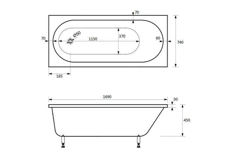 «Сантехника Лайф» Ванна из литьевого мрамора Классик 170 (169х74 см) информация: