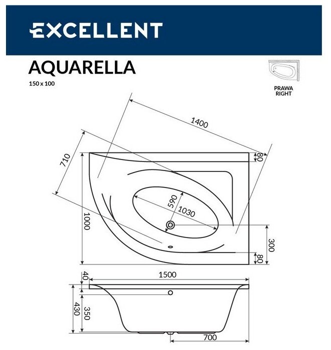 EXCELLENT Акриловая ванна EXCELLENT Aquarella 150x100 (прав.) WAEX.ARP15WH