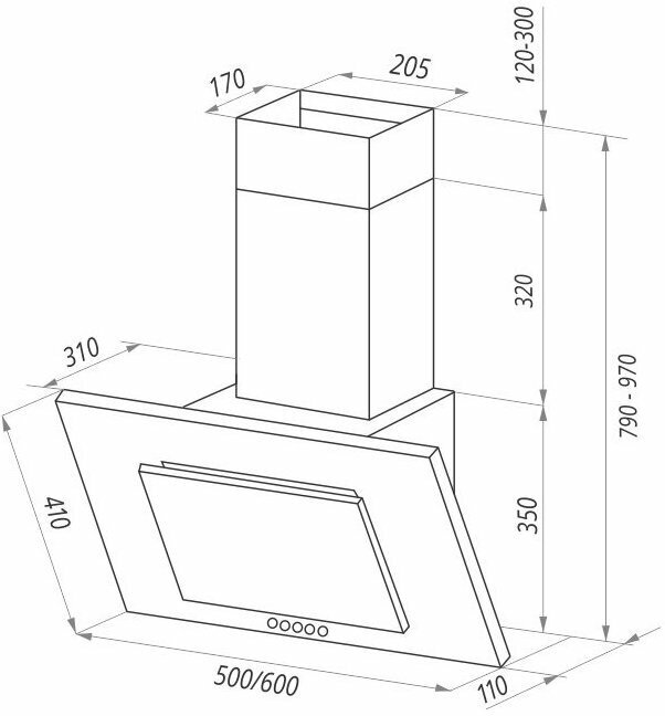 Вытяжка кухонная наклонная Libhof LV-4060 black-silver / тройной алюминиевый жировой фильтр / сенсорное управление