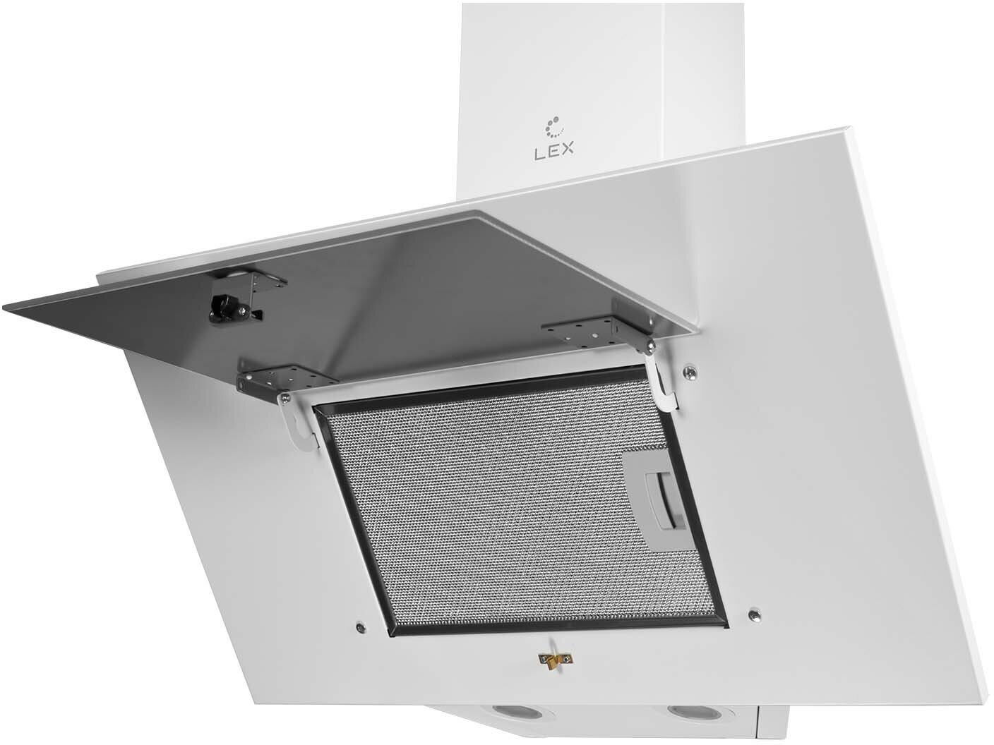Наклонная кухонная вытяжка LEX MIO G 600 WHITE, 60 см, отделка: стекло, кнопочное управление, LED лампы, белый.
