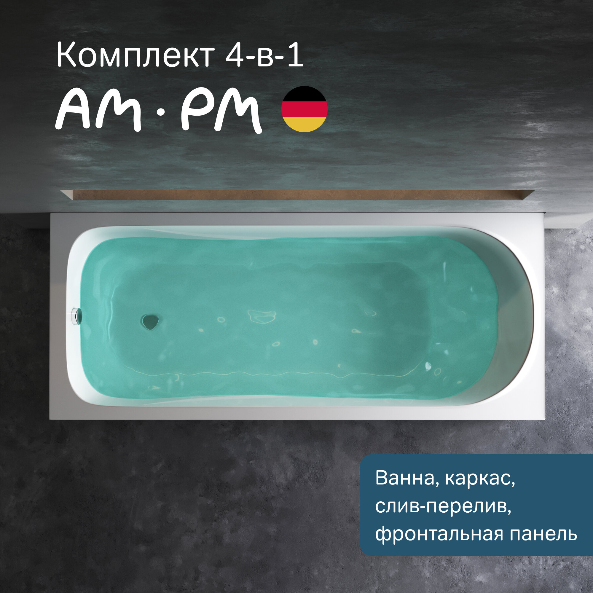 Комплект 3 в 1 ванна акриловая AM.PM Sense 170x70 с каркасом, фронтальной панелью, и слив переливом информация:
