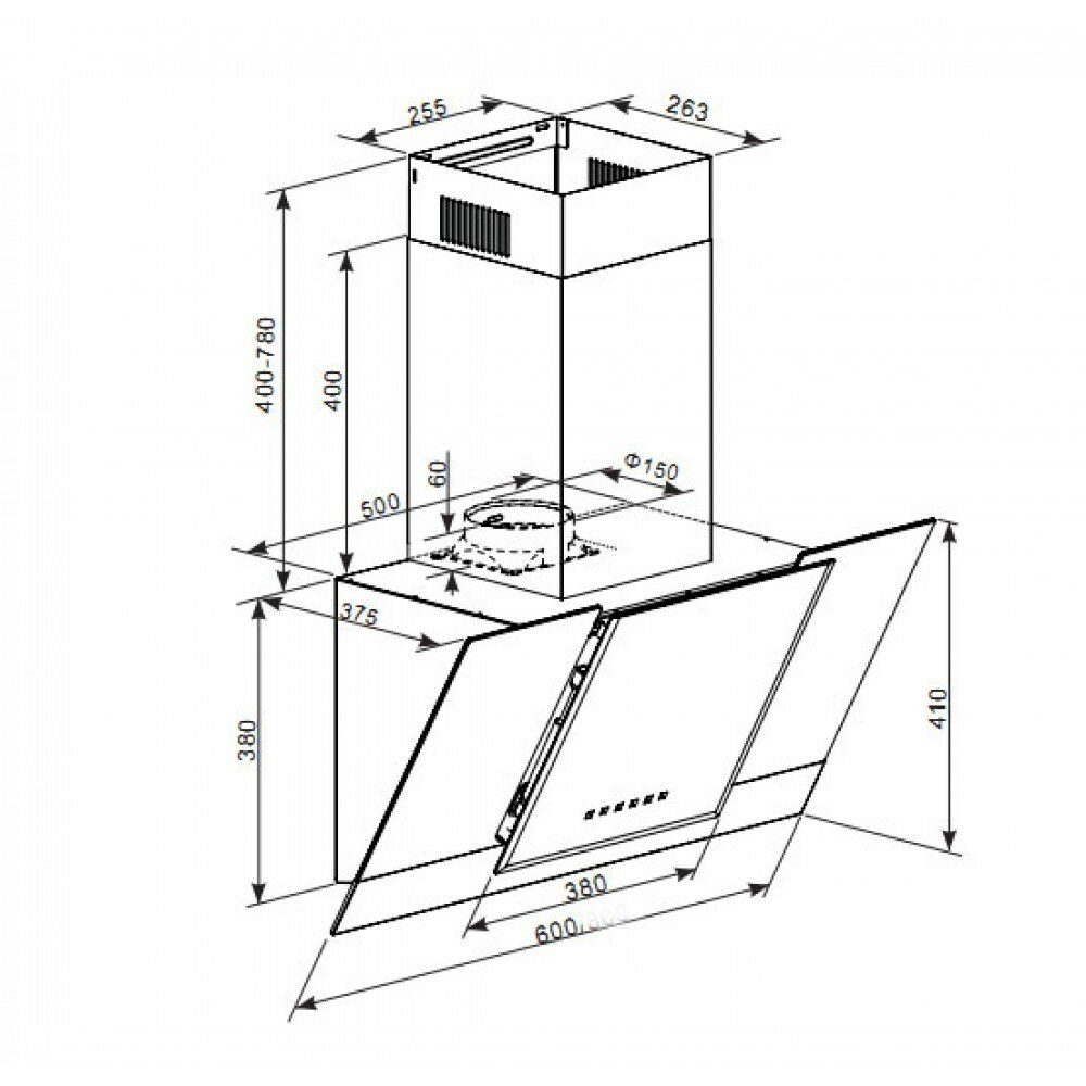 Вытяжка кухонная наклонная Libhof LV-4060 black-silver / тройной алюминиевый жировой фильтр / сенсорное управление