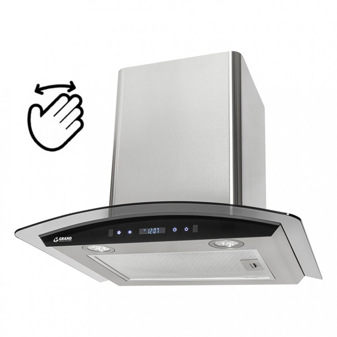 Вытяжка кухонная наклонная Libhof LV-4060 black-silver / тройной алюминиевый жировой фильтр / сенсорное управление