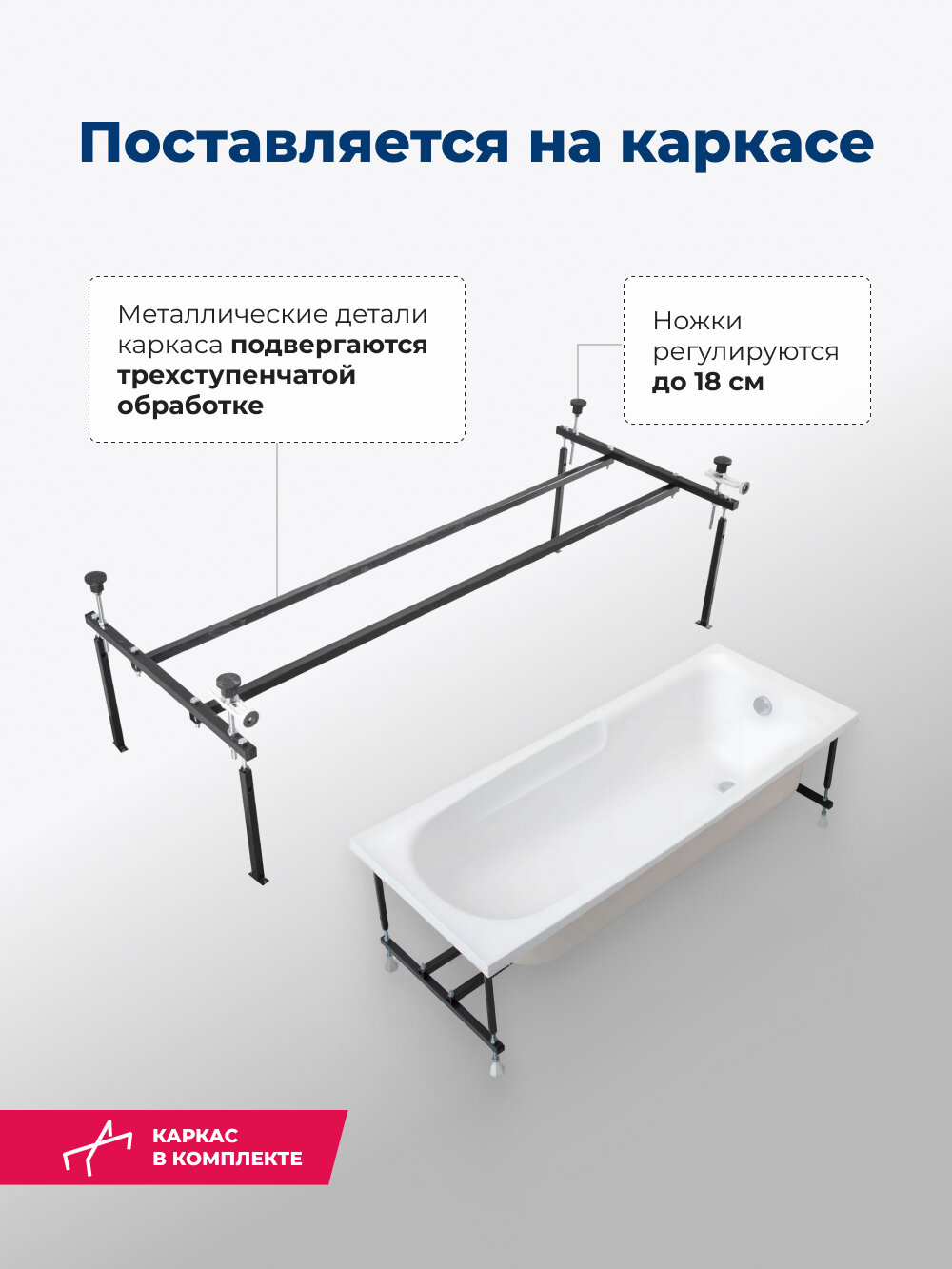 | Особенности | съемная фронтальная панель, регулируемая высота ножек, установка на каркас, антискользящее покрытие дна |