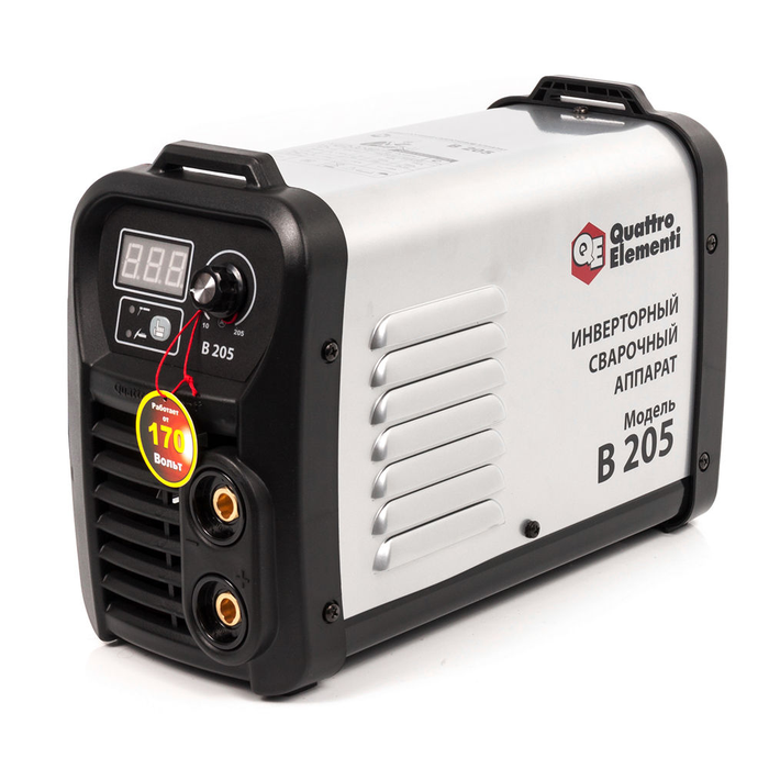 Аппарат электродной сварки, инвертор QUATTRO ELEMENTI B 205 (205 А, ПВ 80%, до 5.0 мм, 5.3 кг, Дисплей, TIG-Lift, от 170В, кейс)