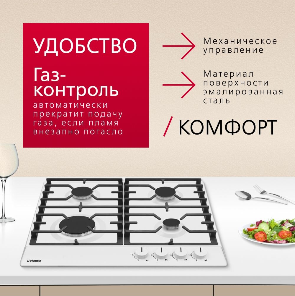 Поверхность газовая HANSA BHGW630301 белый