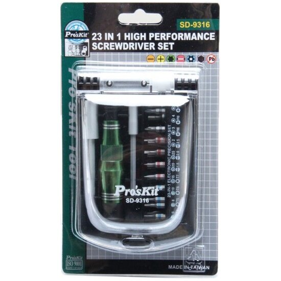 10 цен на Отвертка прецизионная PRO'SKIT SD-9316 со сменными битами, 21 биты, 2 удлинителя