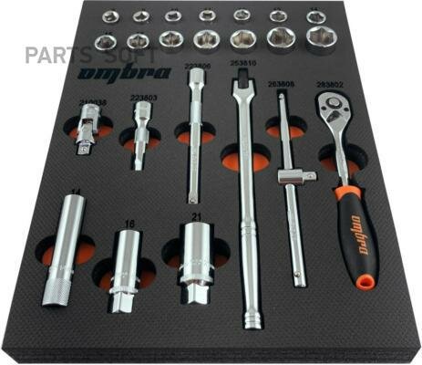 Набор Головок Торцевых 3/8 Dr С Аксессуарами В Eva Ложементе 280Х375 Мм, 23 Предмета Шт. 0 OMBRA арт. OMT23STE
