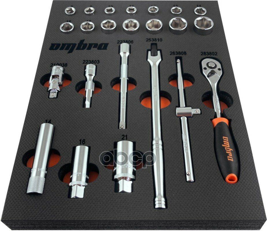 OMT23STE OMBRA Набор головок торцевых 3/8 DR с аксессуарами в EVA ложементе 280х375 мм, 23 предмета
