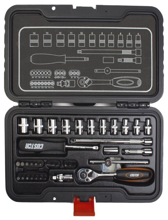 Отзывы на CUSTOR Набор торцевых головок и бит 1/4, 37 предметов TK-02037K