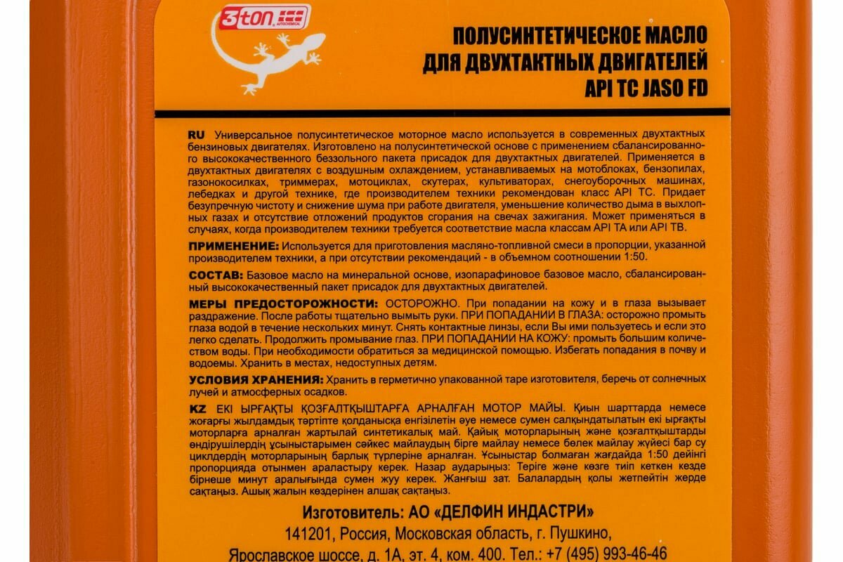 3TON ТМ-102 Масло двухтактное полусинтетика Супер 2Т 1 л