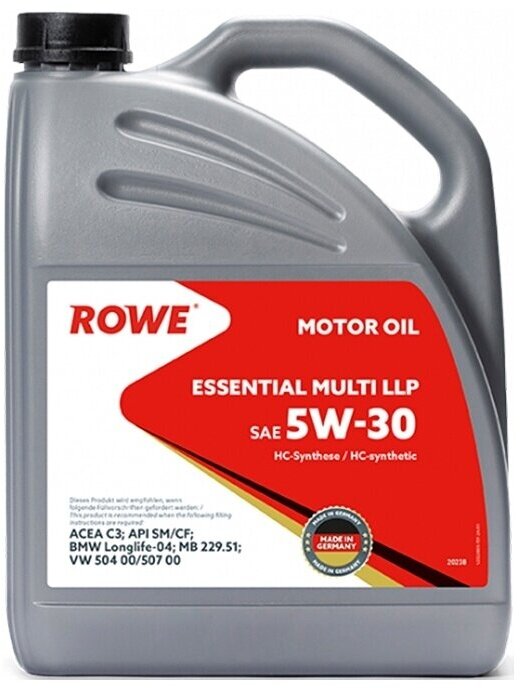 ROWE 202384532A Масло моторное ROWE ESSENTIAL MULTI LLP SAE 5W-30 SM/CF C3 LL04 229.51 504 00/507 00 (4л.)