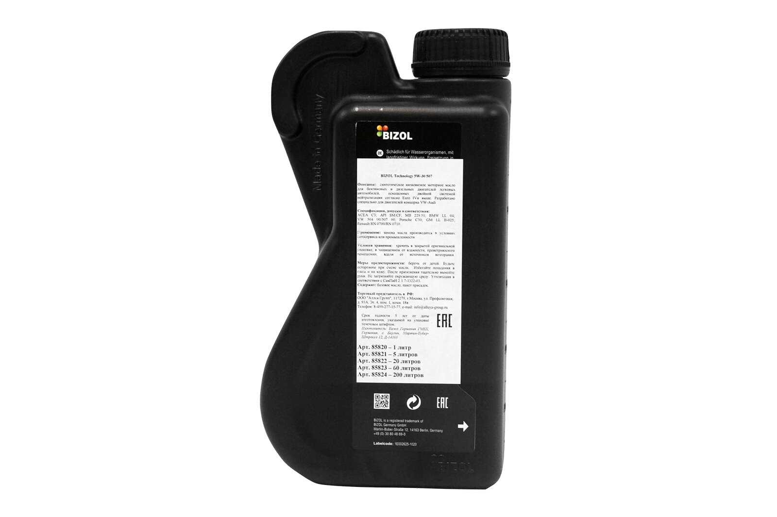 Масло моторное BIZOL Technology 5W30 507 SM C3 1л информация: