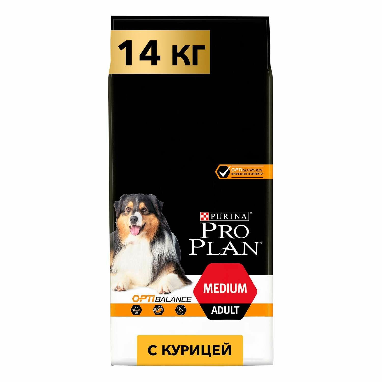 10 цен на Корм PRO PLAN Medium OPTI BALANCE (комплекс, учитывающий возраст и телосложение) для собак средних пород, с курицей, 14 кг