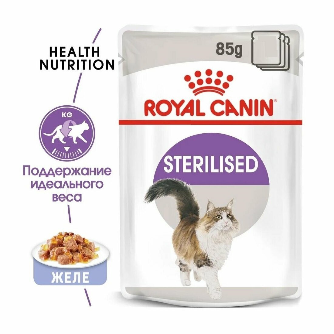 Влажный корм для стерилизованных кошек Royal Canin Sterilised, 96 шт. х 85 г (кусочки в желе) информация: