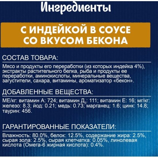 Felix Sensations влажный корм для взрослых кошек, индейка с беконом в соусе, в паучах - 75 г х 26 шт информация: