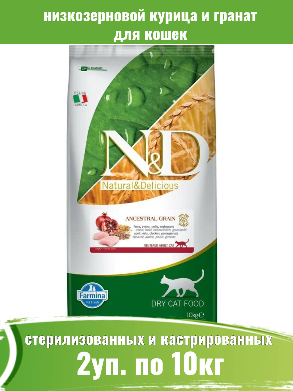 10 цен на Farmina (Фармина) N&D Cat 10кг х 2шт низкозерновой курица и гранат для стерилизованных и кастрированных сухой для кошек