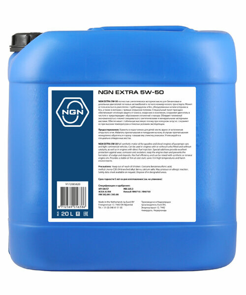 Масло моторное NGN 5W-50 SN/CF EXTRA 20л. информация:
