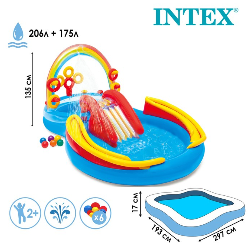 Игровой надувной бассейн 297x193x135 см, от 2 лет, Intex «Радуга», арт. 57453 информация: