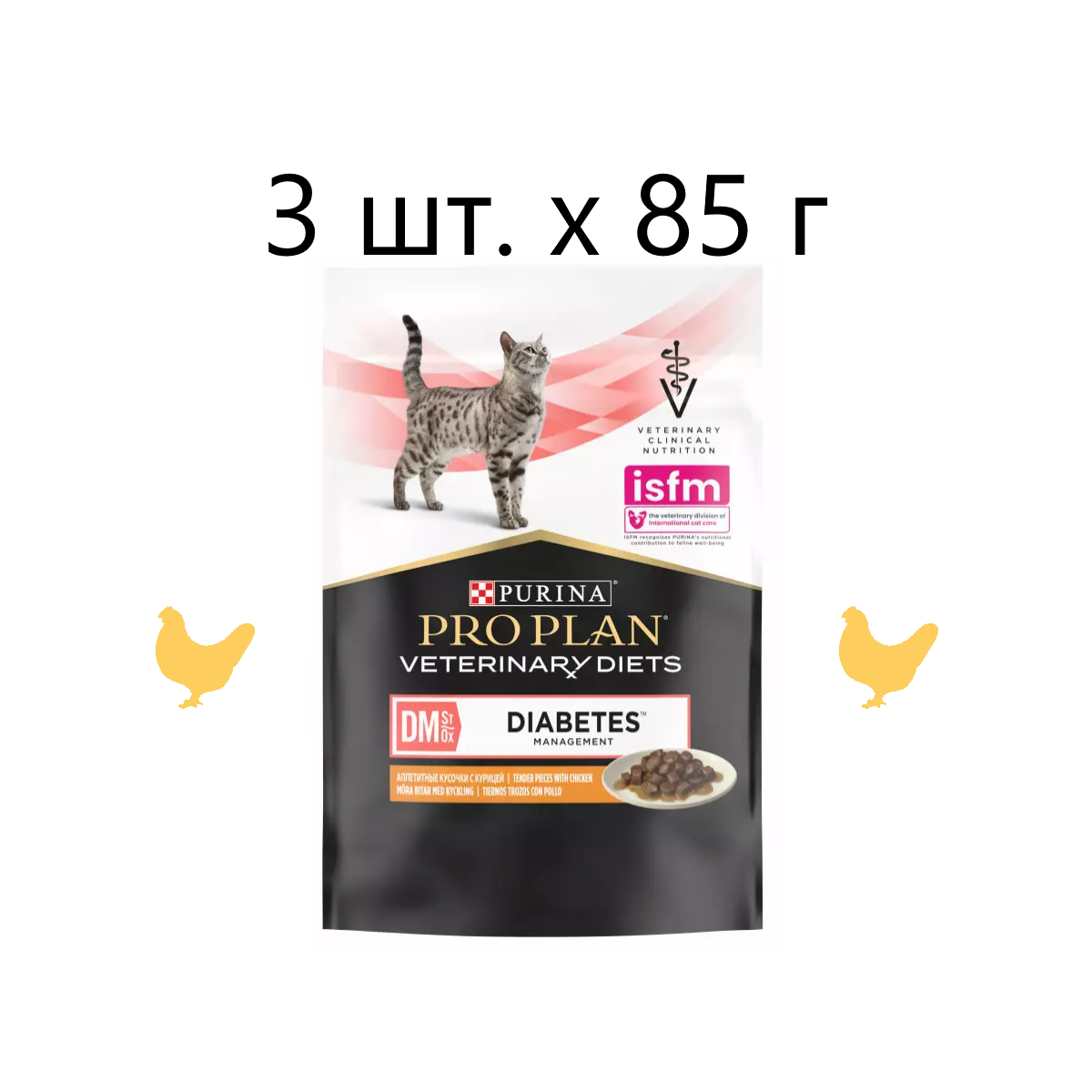 Влажный корм для кошек Purina Pro Plan Veterinary Diets DM St/Ox DIABETES MANAGEMENT, при сахарном диабете, с курицей, 3 шт. х 85 г информация: