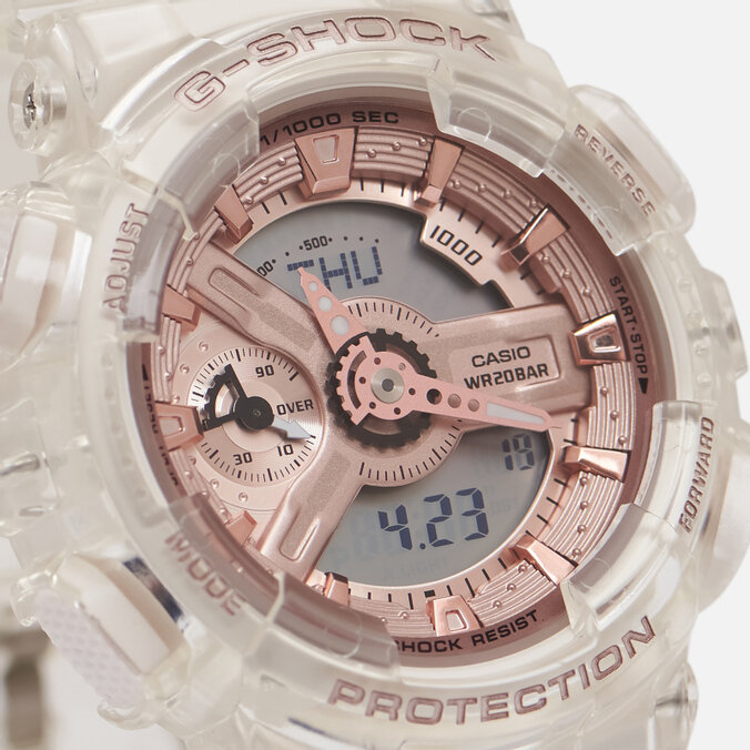 Наручные часы CASIO G-Shock GMA-S110SR-7A кварцевые, будильник, хронограф, тахиметр, секундомер, таймер обратного отсчета, водонепроницаемые, противоударные, подсветка дисплея, бесцветный, розовый