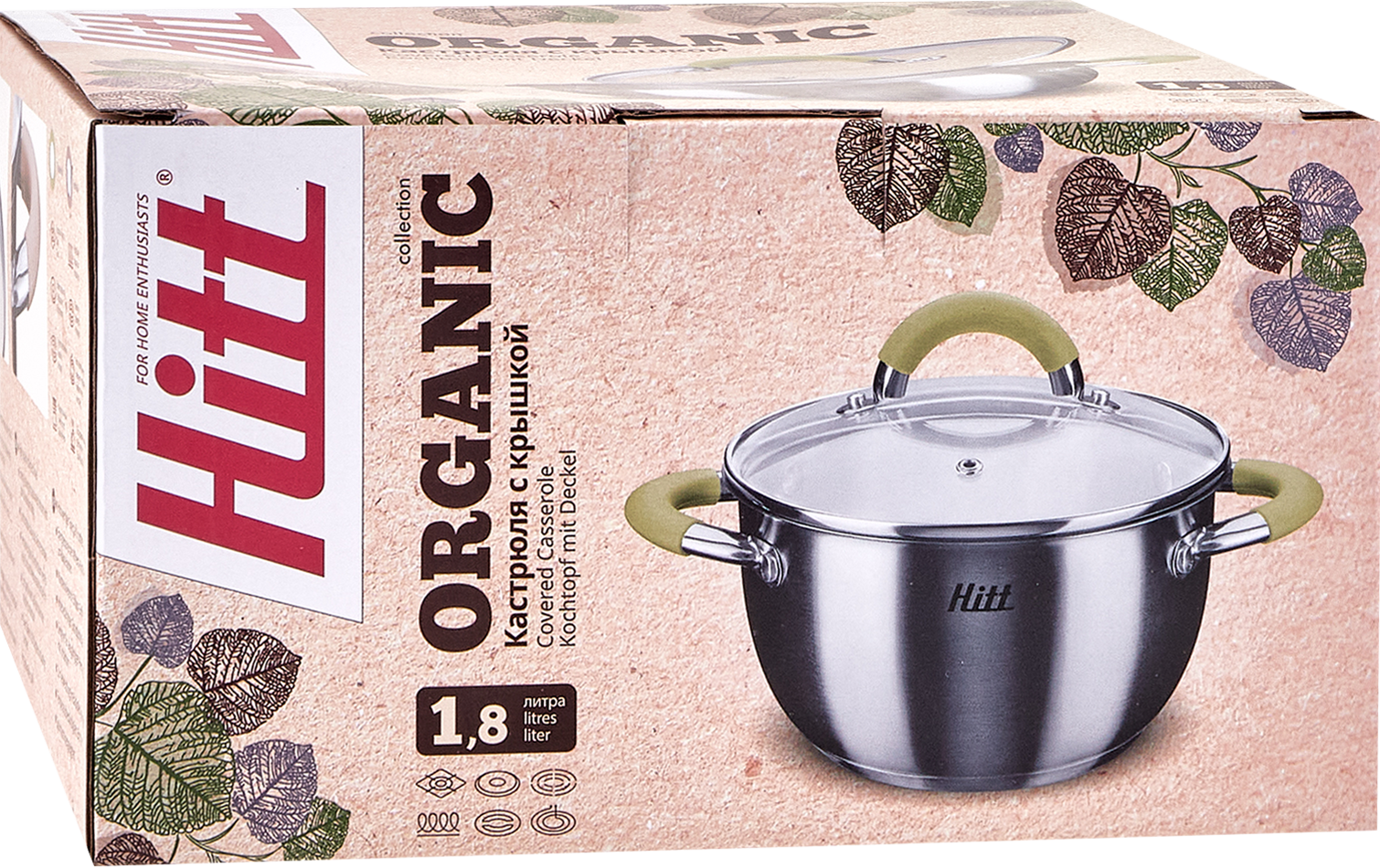 Кастрюля Hitt Organic со стеклянной крышкой 1,8 л 16 см, индукция H-OG117 информация: