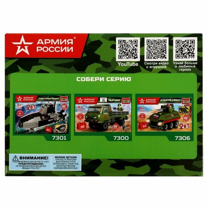 Армия россии конструктор внедорожник, 86 дет. Город мастеров / конструкторы информация: