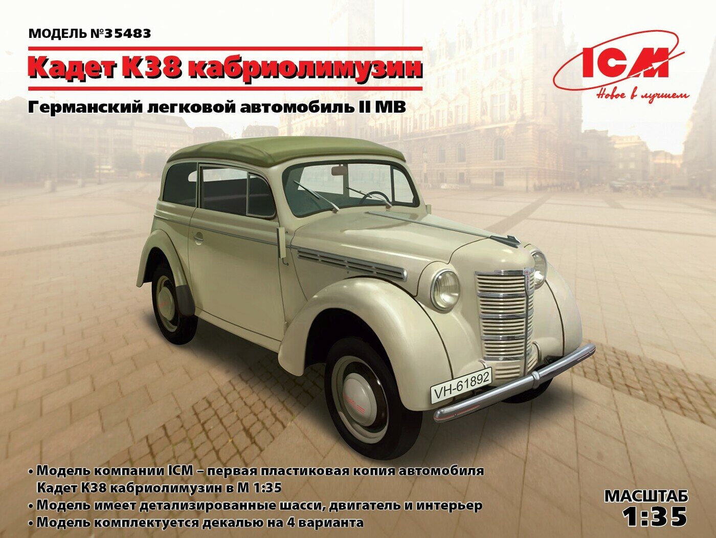 ICM Сборная модель Кадет К38 кабриолимузин, Германский легковой автомобиль II МВ, 1/35 информация: