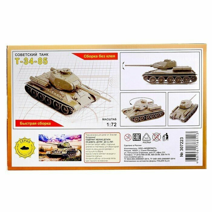 Сборная модель "Советский танк Т-34-85", масштаб 1/72, 307223 информация: