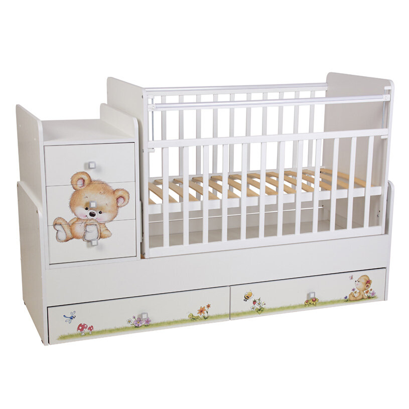 Кроватка детская трансформер для новорожденного Indigo Омега 6 в 1 с поперечным маятником, массив березы, белый